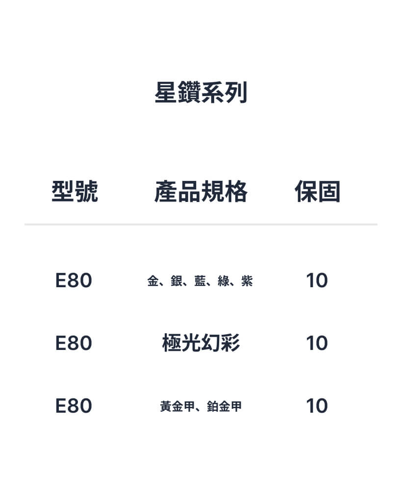 S CLASS 星鑽系列 全台唯一・鑽石守護 流光溢彩・熠熠生輝 產品特色Product Feature DSCK 於 2020 年研發出獨有的星鑽犀牛皮,使用流延注入法工藝,將甄選的閃鑽顆粒加入 TPU 的基材而非膠水中,克服常見的閃粉不均或撕膜卡漆等問題。 流延注入法工藝可以使閃鑽達到十年內不會脫落的效果,在太陽照射下閃閃發亮。 讓膜料不僅擁有傳統 TPU 的保護,同時增加車身金屬漆質感,既不影響車身顏色,又可以使車漆在陽光下閃耀出不同色彩的光澤,盡顯低調奢華。 DSCK 星鑽犀牛皮目前擁有 6 種不同的顏色,依據客戶的愛好和個性,可以搭配不同的產品,展現個人化特色。 同是星鑽犀牛皮・我們不一樣We Are Different DSCK 星鑽犀牛皮: 將甄選的閃鑽顆粒加在基材層裡面,全面杜絕星鑽犀牛皮所面臨的閃鑽不均勻、易脫落、易掉鑽的風險,品質更高、效果更好,使用壽命更長! 普通星鑽犀牛皮: 將閃鑽顆粒加在膠水裡面,刮刀刮膠水時,閃鑽顆粒會被刮掉,也會隨著膠水而移動,容易分佈不均,同時會影響膠水的性能以及膜料的貼合度,撕膜時更有閃鑽脫落的風險。 產品示意Product Illustration 全系列產品規格ALL PRODUCTS SPECS 依車型、施工項目、施工難易度、用料多寡,價格會有所差異。終端零售價請依施工店家報價為主 TOP PRO S CLASS